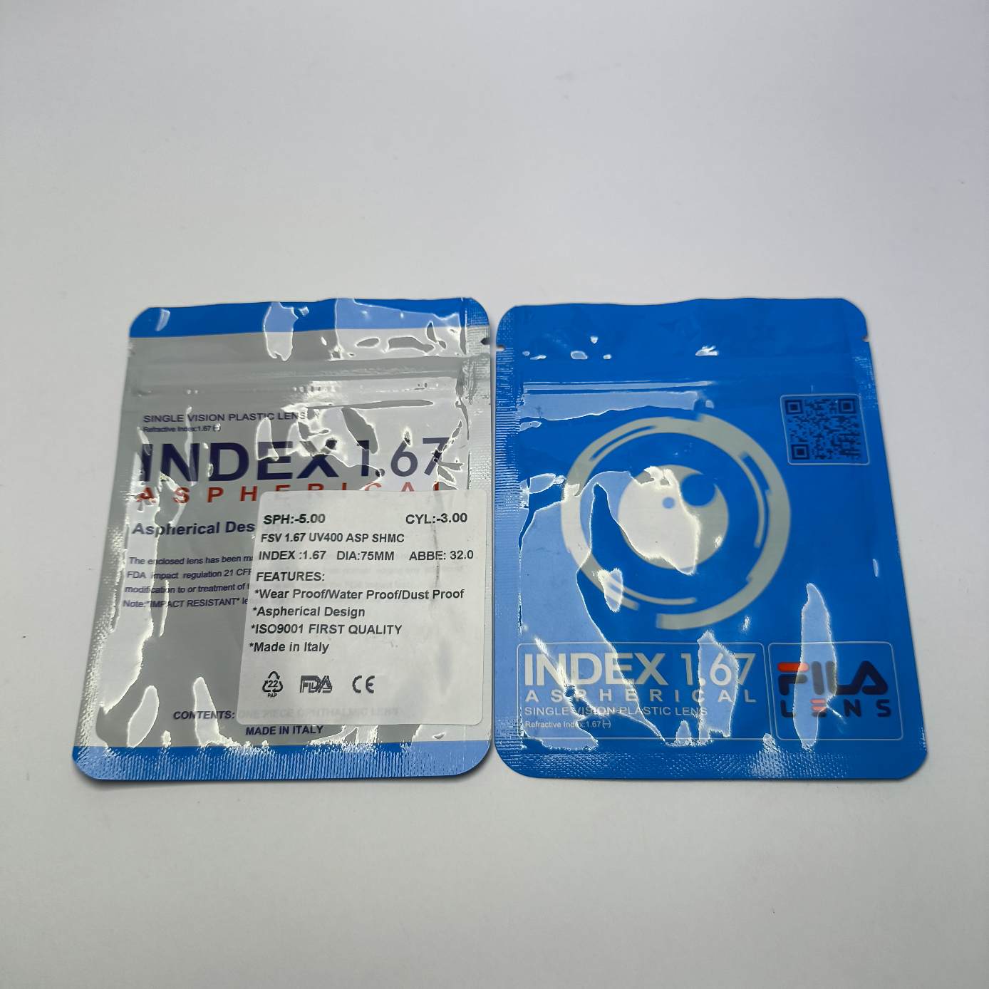 یک جفت عدسی ایتالیایی سوپر هیدروفوبیک فشرده ۱.۶۷ فیلا Fila