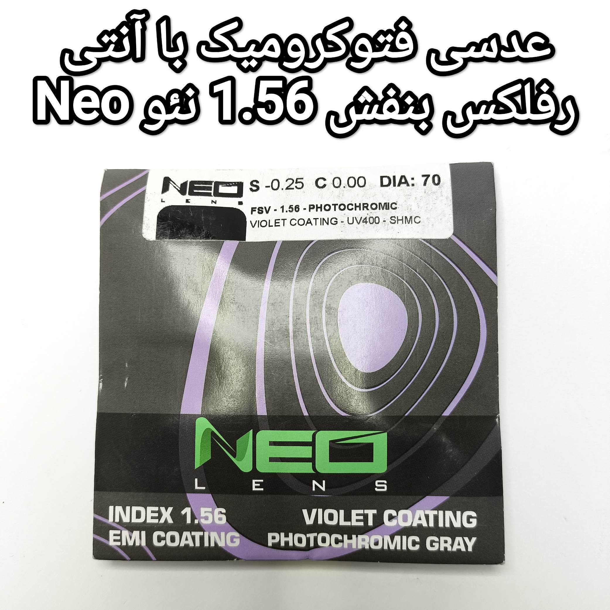 عدسی فتوکرومیک فست چنج آنتی بنفش 1.56 ویولت Violet به همراه اورجینال پک