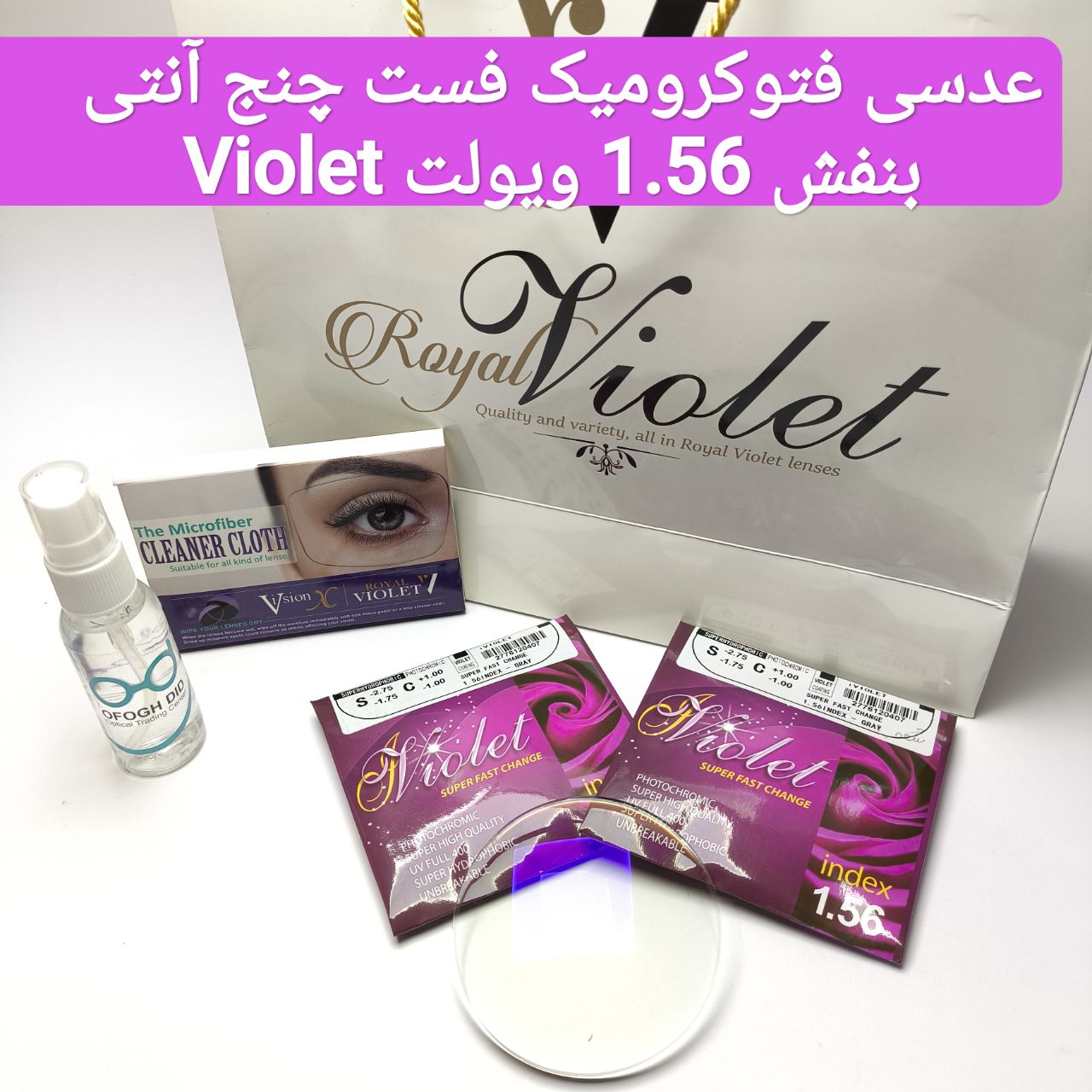 عدسی بلوکات فتوکرومیک 1.56 ویولت VIOLET به همراه لوازم جانبی اورجینال