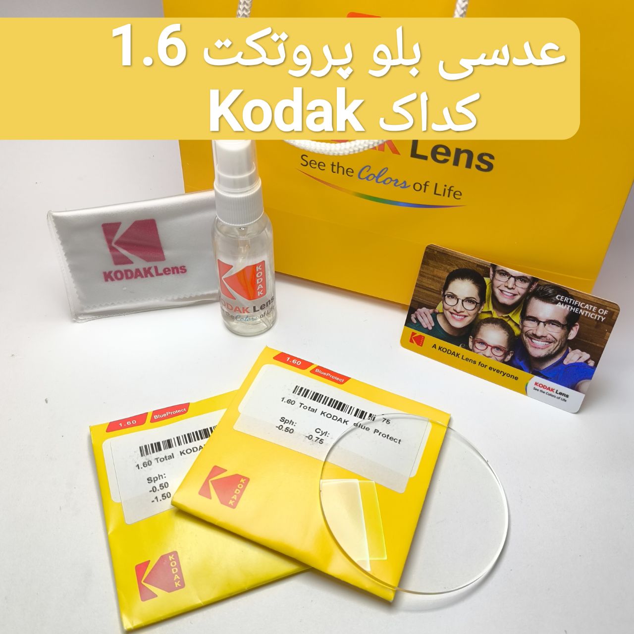 عدسی عینک فتوکرومیک 1.50 کداک Kodak +پک کامل لوازم جانبی