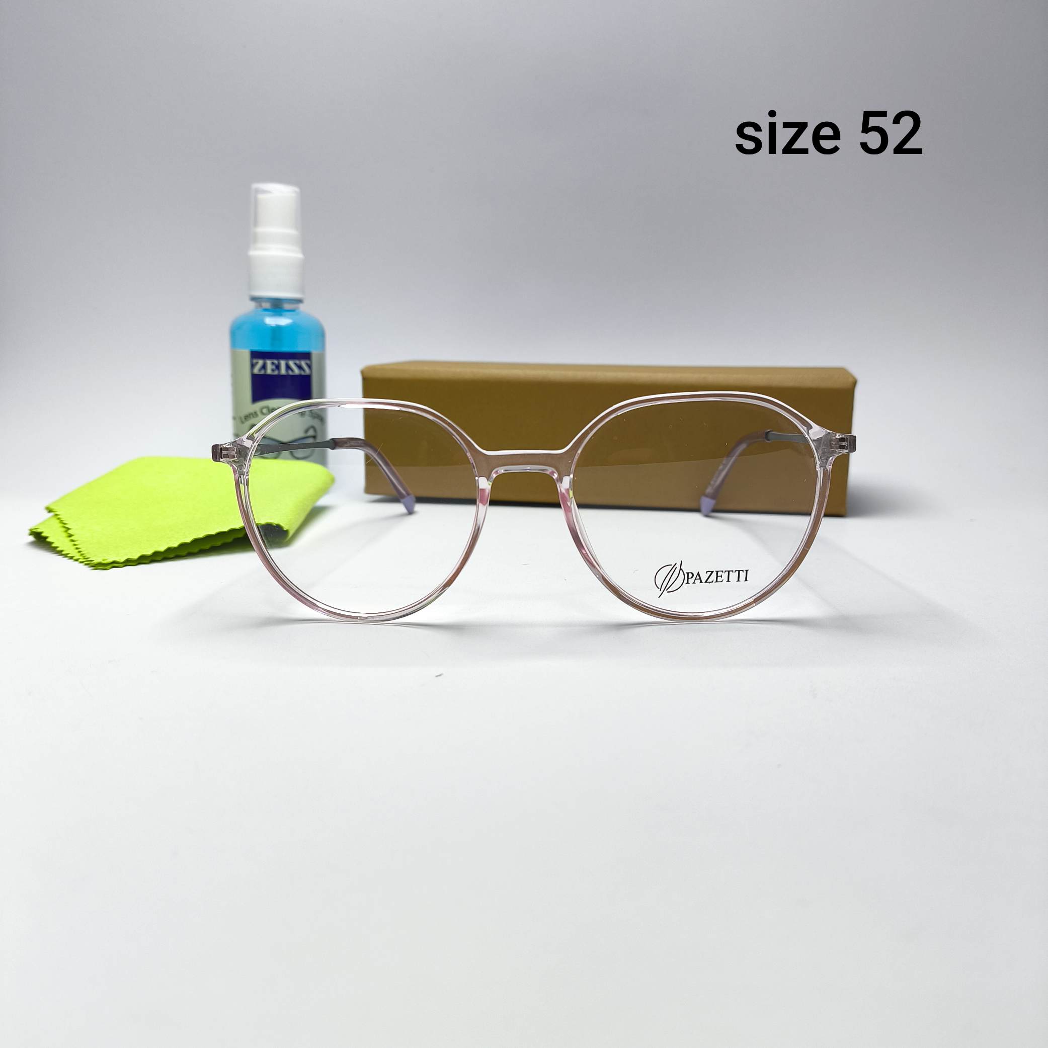 برند: پازتی (Pazetti) جنس: فلز و کائوچو سایز: 52 (شما میتوانید دستمال و جلد عینک رو به صورت جدا در سایت ما خریداری کنید)