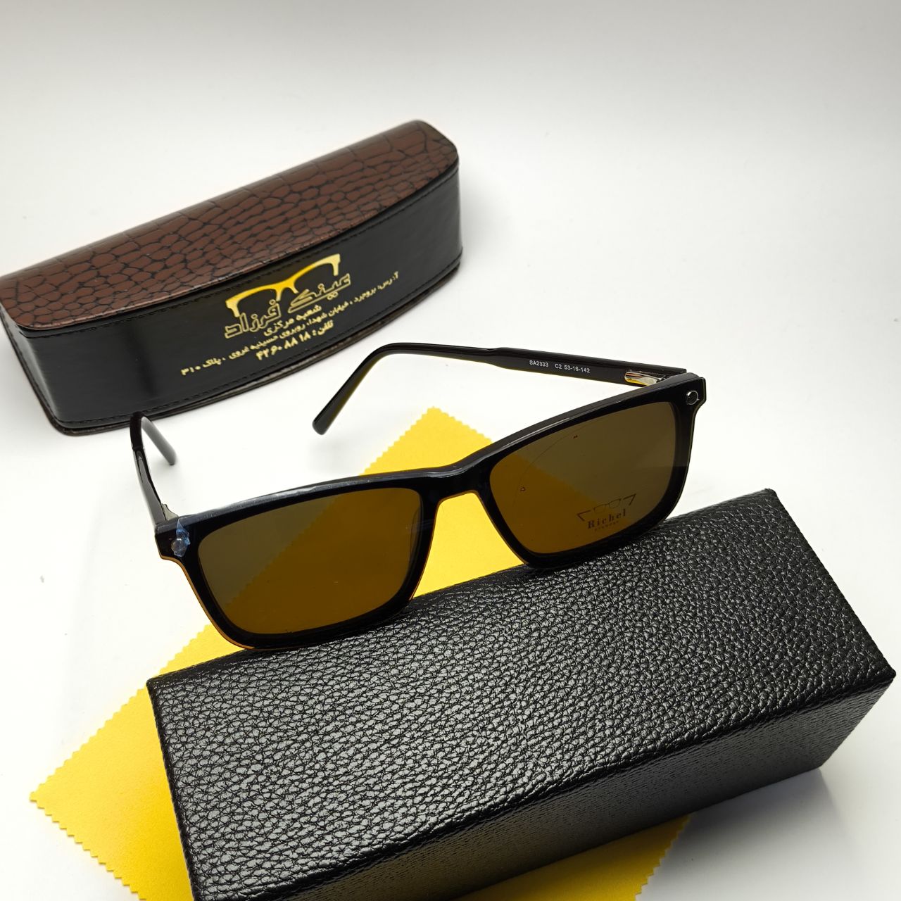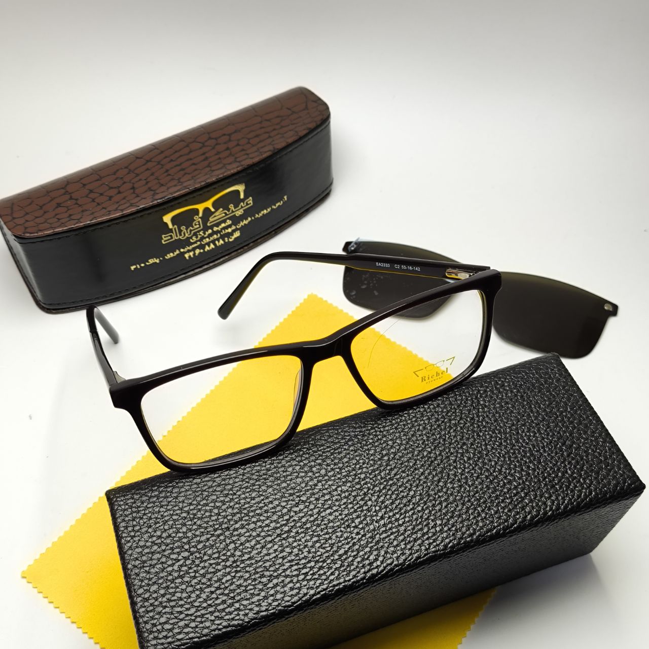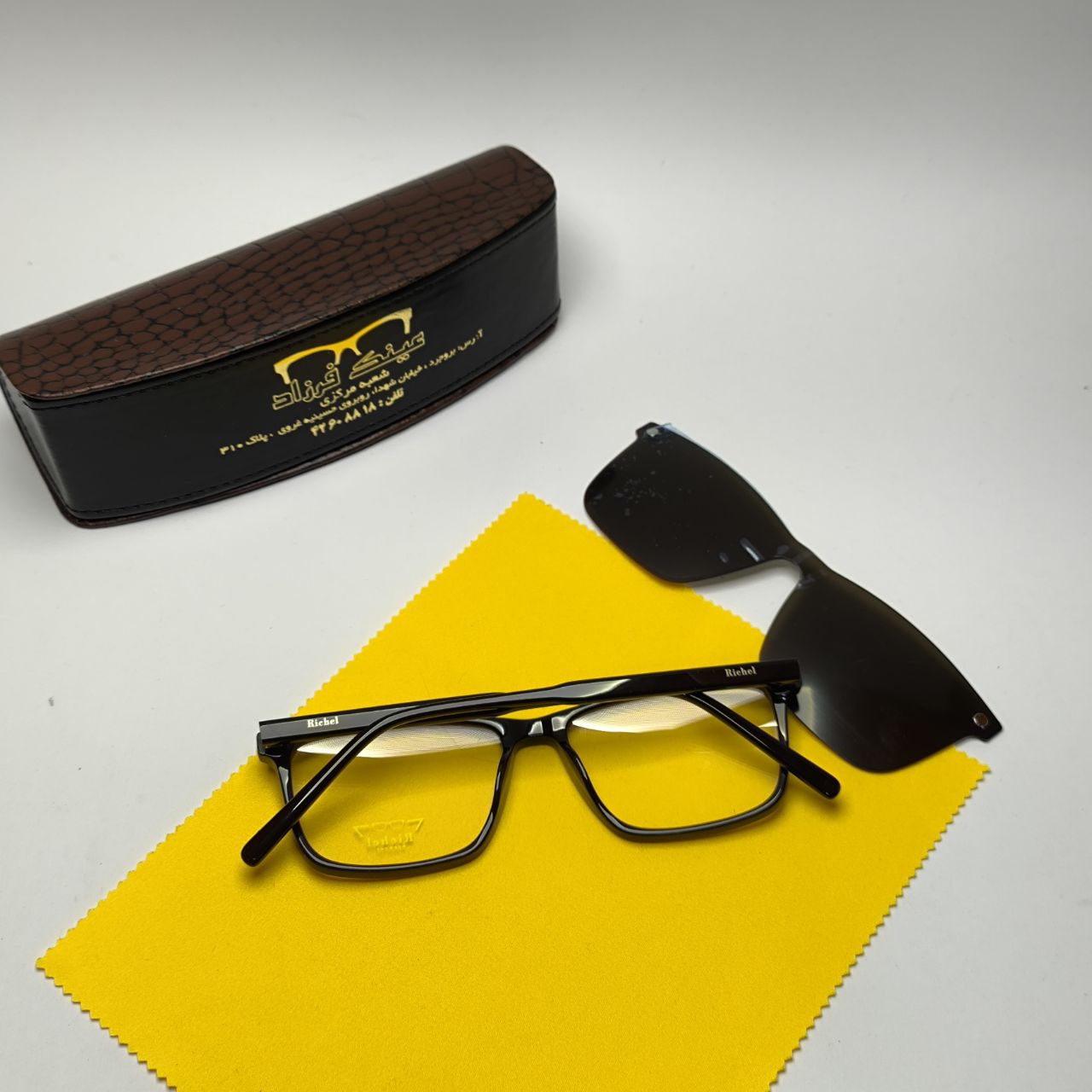 (شما میتوانید دستمال و جلد عینک در تصویر رو به صورت جدا در سایت ما خریداری کنید)