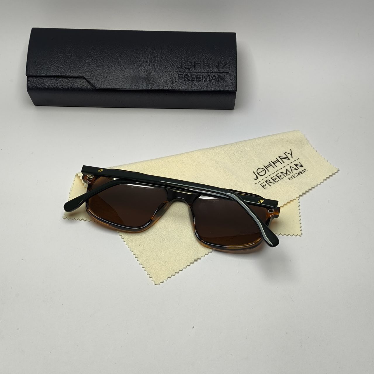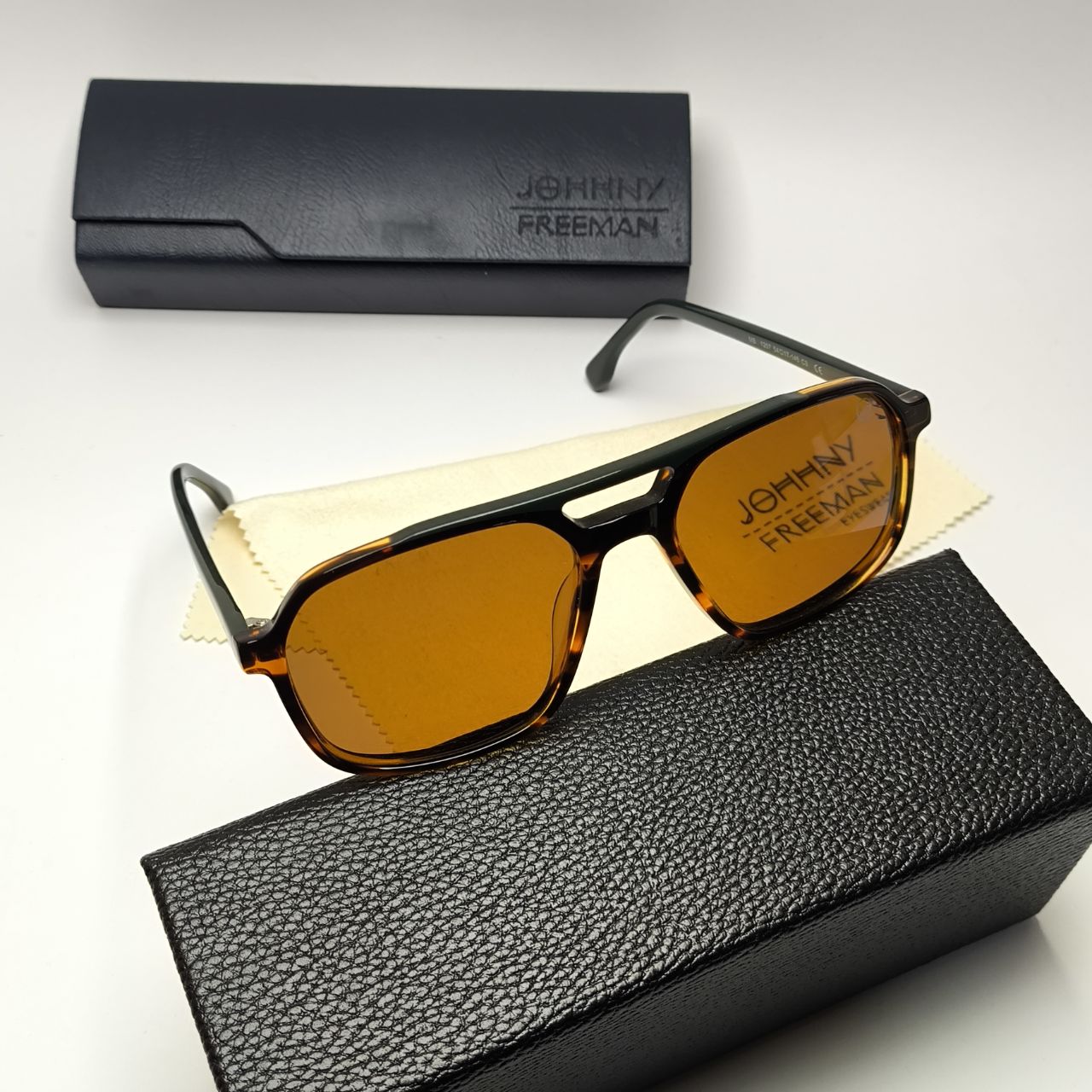 عینک آفتابی جانی فریمن Johhny freeman مدل 1257 مستر دسته سیم کائوچو اسیتیت پلاریزه به همراه پک کامل اورجینال
