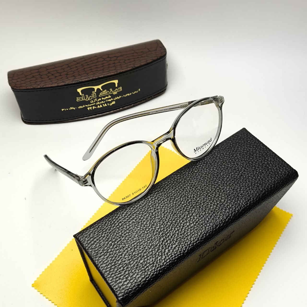 (شما میتوانید دستمال و جلد عینک رو به صورت جدا در سایت ما خریداری کنید)