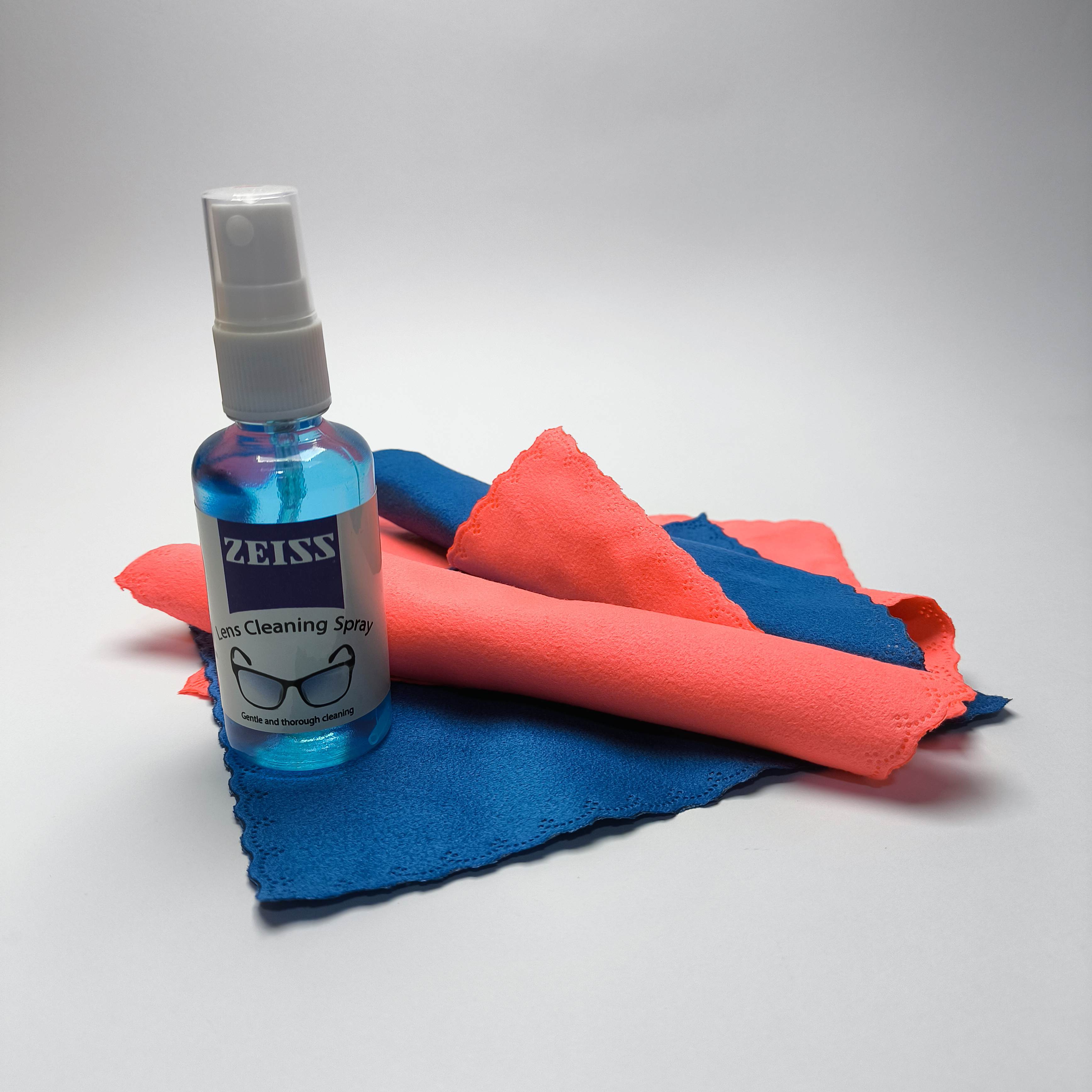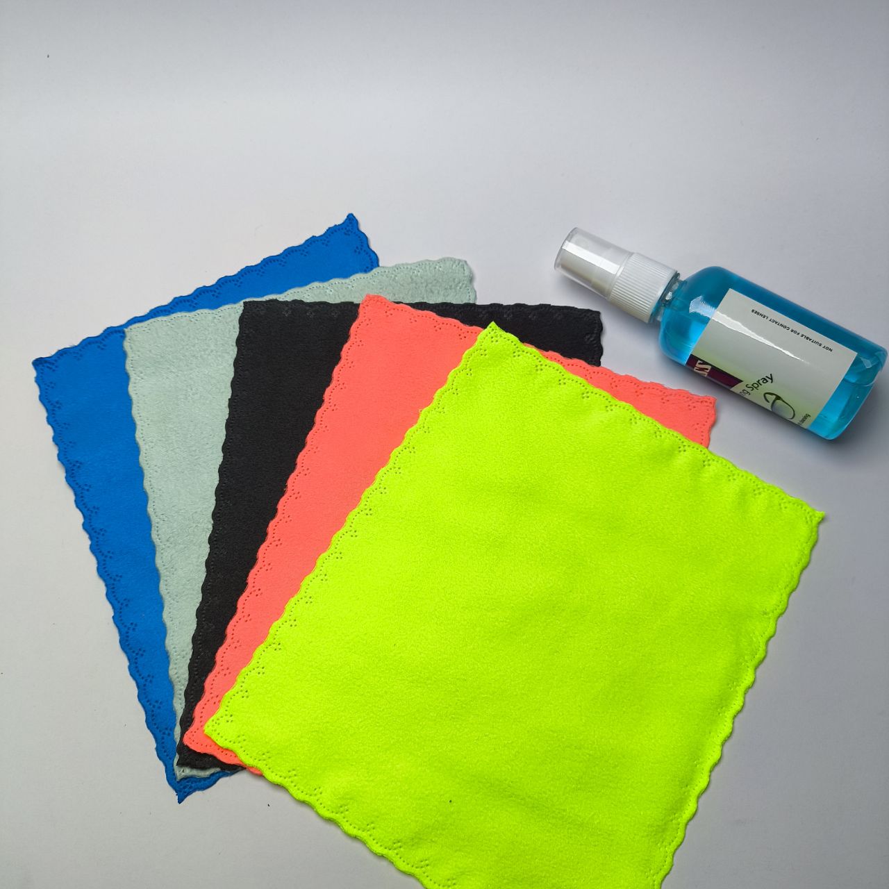 پک یک عدد دستمال پنبه‌ای و یک عدد اسپری مخصوص عینک طبی و آفتابی