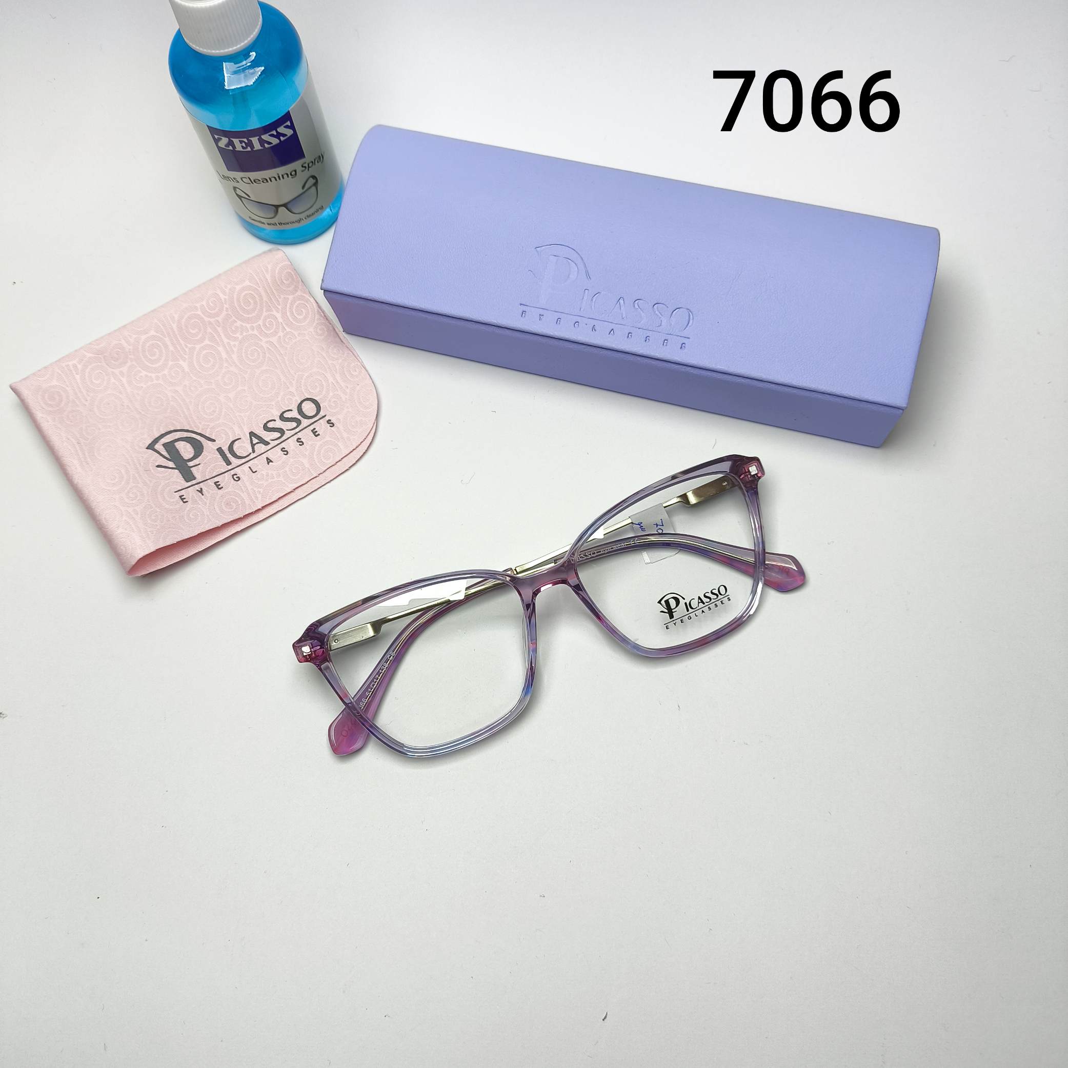 عینک طبی زنانه استات دسته سیم پیکاسو Picasso به همراه جلد و دستمال مدل 2080