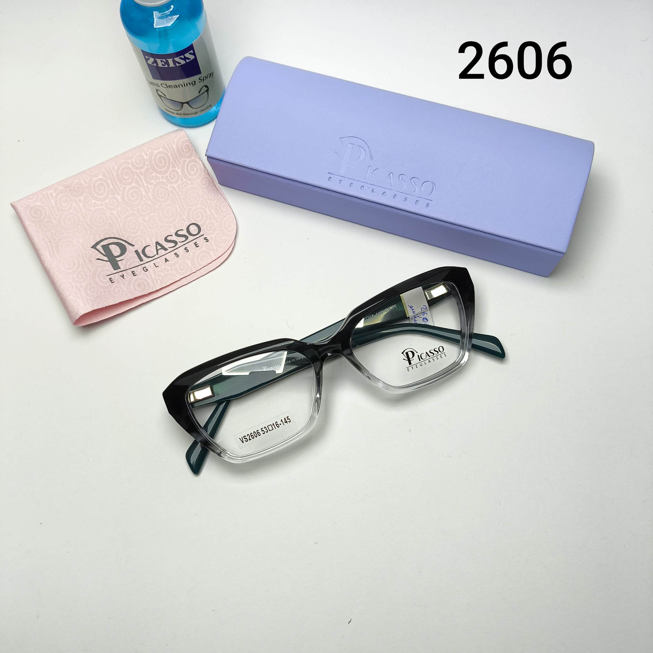 عینک طبی زنانه استات دسته سیم پیکاسو Picasso به همراه جلد و دستمال مدل 2606